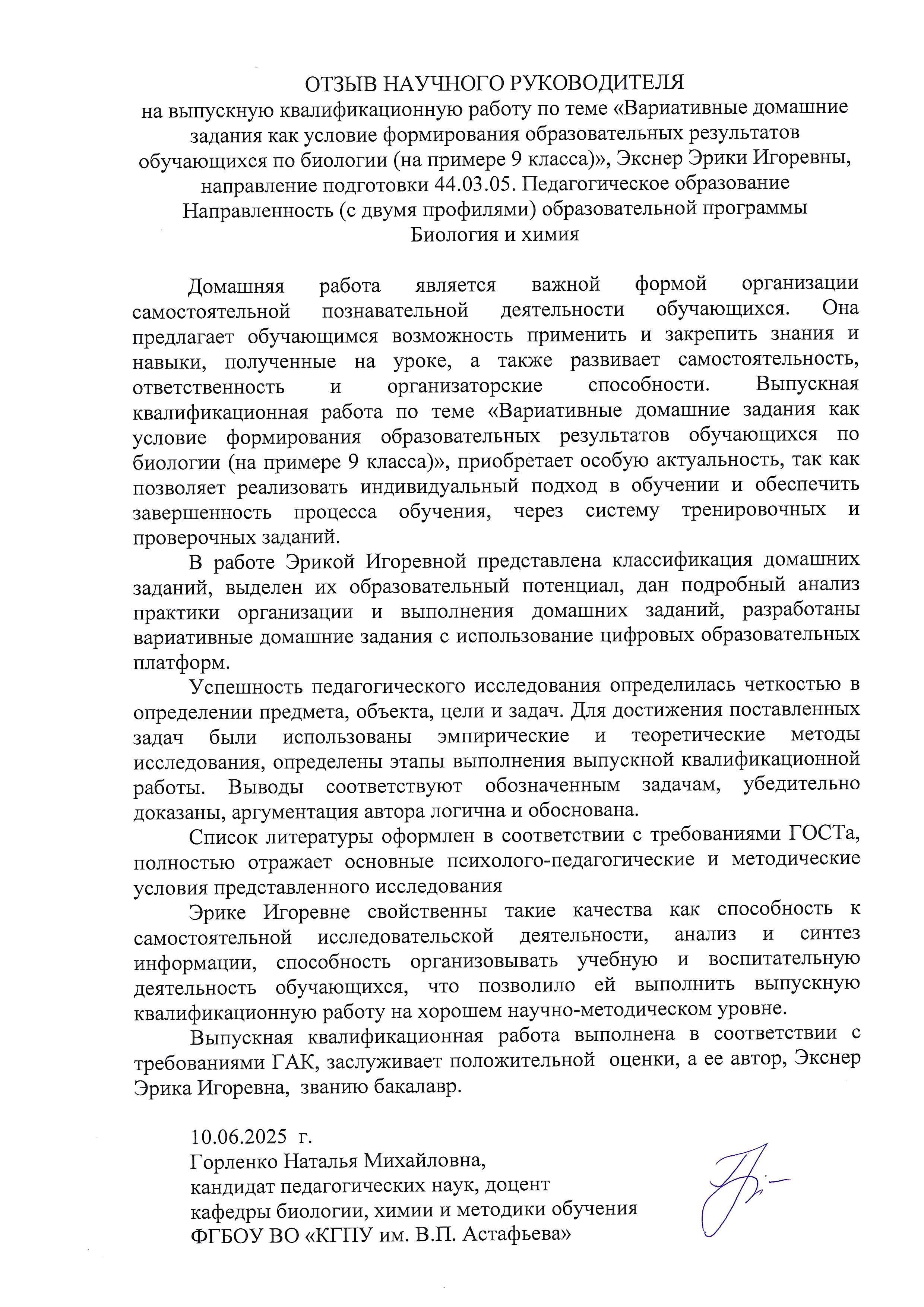 Вариативные домашние задания как условие формирования образовательных результатов обучающихся по биологии (на примере 9 класса)